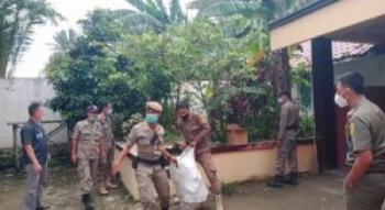 Kasi Trantib Kecamatan Parung Panjang Dadang Kosasih didampingi Kanit Intel Parung Panjang, mengintruksikan kepada anggotanya untuk menyisir lokasi dan barang bukti yang disembunyikan oleh pemilik.