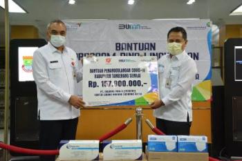PT Angkasa Pura II yang merupakan BUMN yang bergerak di bidang penerbangan memberikan bantuan berupa alat dan kelengkapan medis seperti Hand Sanitizer 10 Jirigen, Disinfektan 10 Jirigen, Masker 5000 Buah, Blave 60 box, Hazmat 60 buah, Rapid Test Antigen 60 box, dan Rapid Test Anti Body 60 box semuanya bernilai Rp. 157.900.000.