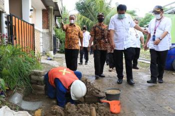 Setelah meresmikan KCP, Sekda langsung meninjau sambungan langsung jaringan perpipaan di Perumahan Puri Mekar Desa Mekarsari Kecamatan Rajeg. Sebanyak 200 KK, mendapatkan pemasangan langsung dan bisa mendapatkan air bersih Perundam TKR.
