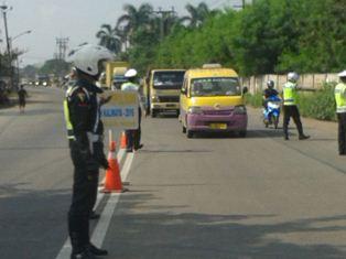TIGARAKSA - Satuan Lalulintas Polresta Tangerang menggelar operasi untuk menertibkan pengendara bandel baik roda 2 maupun roda 4 sejak awal pekan lalu. Di hari ke empat ini operasi yang bersandi "Operasi Patuh Kalimaya" ini ratusan kendaraan ditilang, di Jalan Raya Pemda atau Syeh Nawawi Tigaraksa.