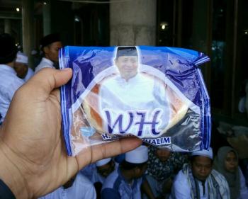 Marlina salah satu jemaah mengatakan dia menerima roti berlogo WH dari seseorang yang tidak diketahuinya. Menurut Marlina bukan hanya dirinya saja yang mendapatkan roti berlogo WH teman-temanya pun dibagikan.