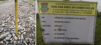 "Pengawasnya tidak pernah terlihat, wajar kalau proyek ini tidak sesuai dengan RAB. Terlihat beberapa titik ketebalan jalan hanya dikerjakan 10-14 centimeter saja. Ini jelas terjadi pengurangan volume pekerjaan," ujar Anak, anggota LSM Pusaka.