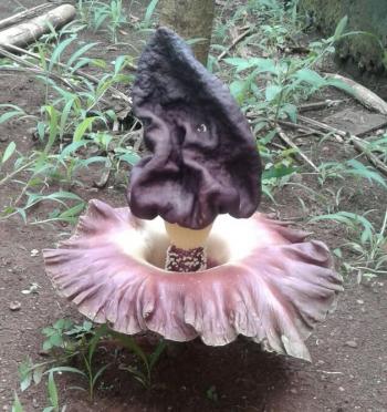 Tumbuhan ini menjadi sorotan lantaran keunikannya. Warga setempat pun tak perlu jauh - jauh ke Taman Raya Bogor untuk melihat bunga bangkai ini.