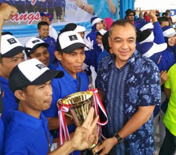 "saya sangat mengapresiasi sekali kepada seluruh pekerja yang telah berpartisipasi dalam acara ini yang dari tadi pagi telah melaksanakan gerak jalan santai dan sampai siang ini masih bertahan disini," kata Andi Gani Nuwawea.
