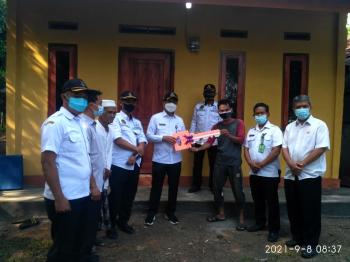 LEGOK, (JT) - Camat Legok serah terimakan rumah layak huni kepada Rahmat (45) di Kampung Sikluk RT 003/001, Desa Bojong Kamal, Kecamatan Legok, Kabupaten Tangerang, Rabu (8/9/2021). Rumah yang semula tidak layak huni ini dibedah menggunakan APBD Kabupaten Tangerang 2021.