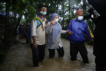 PANDEGLANG, (JT) - Curah hujan tinggi mengakibatkan beberapa wilayah di Pandeglang terendam banjir. Bupati Pandeglang Irna Narulita turun langsung menyalurkan bantuan kepada warga korban banjir di Desa Citeureup Kecamatan Panimbang.
