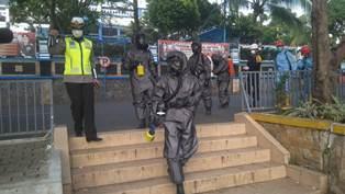 Petugas Unit Laka yang dilengkapi APD itu akan menangani dan mengevakuasi korban kecelakaan atau masyarakat yang membutuhkan pertolongan pertama karena tergeletak di jalan. (SHN)