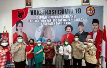TANGERANG, (JD) - Guna membantu program pemerintah untuk percepatan penanganan virus COVID-19, DPC PDI Perjuangan Kabupaten Tangerang melaksanakan vaksinasi gratis bagi warga. Kegiatan vaksinasi dilakukan di Sekretariat DPC PDI Perjuangan Kabupaten Tangerang.