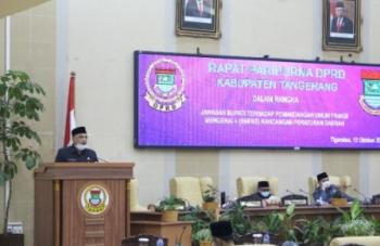 TIGARAKSA, (JT) - Dewan Perwakilan Rakyat Daerah (DPRD) Kabupaten Tangerang Kembali menggelar rapat Paripurna, Rabu (12/10/2020). Kali ini rapat dengan agenda Jawaban Bupati atas Pemandangan Umum fraksi-fraksi terhadap empat Rancangan Peraturan Daerah (Raperda).