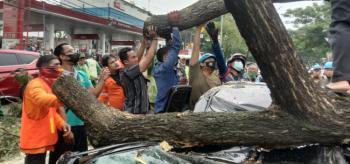 Dua Mobil Tertimpa Pohon, Satu Orang Cedera