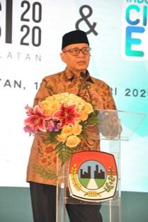 BINTARO, (JT) - Gubernur Banten Wahidin Halim (WH) promosikan potensi pariwisata Banten kepada para walikota dan wakil walikota. Promosi dilakukan saat Launching Munas Apeksi VI Tahun 2020 dan City Expo APEKSI Tahun 2020 Tangerang Selatan di Hotel Santika Premier Bintaro, Rabu (19/2/2020).