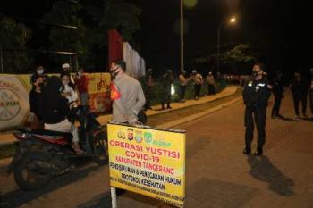 SERANG, (JT) - Hari Kelima operasi yustisi Polda Banten dan polres jajaran menindak 2.129 pelanggar yang tidak mematuhi protokol kesehatan. Operasi yustisi ini digelar dalam rangka pendisiplinan protokol kesehatan dengan 3M yakni Mencuci tangan dengan sabun, Memakai Masker dan Menjaga Jarak. Penegakan hukum dengan sasaran masyarakat yang tidak mengenakan masker.