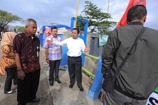 Setelah meninjau Jembatan Alamanda, Arief melanjutkan melihat jembatan yang terletak di tikungan Jl. Industri Keroncong Kelurahan Alam Jaya.