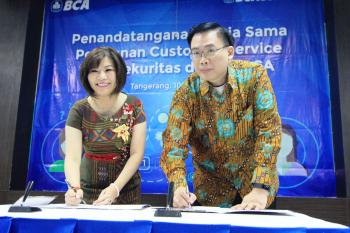 Pelayanan Costumer Service BCA Sekuritas di Halo BCA ditandai dengan penandatanganan Direktur Ekuitas BCA Sekuritas Teguh Hartanto dengan Senior Vice Presiden Halo BCA Wani Sabu di Wisma Asia, BSD, Serpong, Kota Tangsel pada Rabu, (10/5/2017).