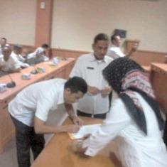 TIGARAKSA - Dinas Pemuda dan Olahraga, Budaya dan Pariwisata Kabupaten Tangerang menggelar acara serah terima jabatan (sertijab) di Ruang Bola Sundul Rabu (2/3/2016). Ada beberapa jabatan yang diserahterimakan diantaranya jabatan Kabid Pariwisata dan Jabatan Kabid Kepemudaan, serta beberapa Kasie serta Kasubag di ruang lingkup Disporabudpar.