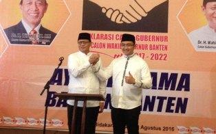 SERPONG - Perhelatan pilgub Banten yang akan berlangsung Februari 2017 semakin menunjukkan geliat meriah. Hal ini ditandai dengan gelar deklarasi partai pengusung pasangan Wahidin Halim-Andika Hazrumy yang berlangsung berturut-turut di Kota Serang. Seolah ingin unjuk kekuatan, pasangan WH-Andika menyelenggarakan deklarasi besar-besaran setiap partai pengusung. Diawali dengan Partai Hanura disusul Partai Keadilan Sejahtera. Kedua partai itu menghadirkan ketua umumnya serta jajaran pengurus pusat ke Kota Serang.