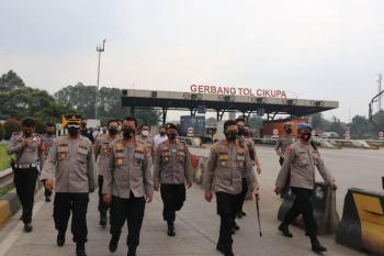 CIKUPA, (JT) - Kapolda Banten Irjen Pol Rudy Heriyanto Adi Nugroho meninjau secara langsung pos pengamanan mudik lebaran 2021.