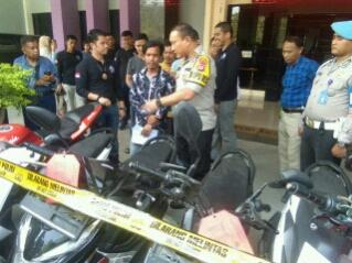 Barang bukti yang berhasil diamankan dari keempat tersangka diantaranya berupa 7 unit sepeda motor, senjata api, kunci letter T, peluru, dan plat nomor palsu.