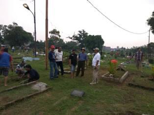 . Lurah didampingi ketua RT/RW, Sekel dan Staf Kelurahan serta Babinsa membersihkan makam sekaligus merapihkan agar tampak indah di pandang mata.
