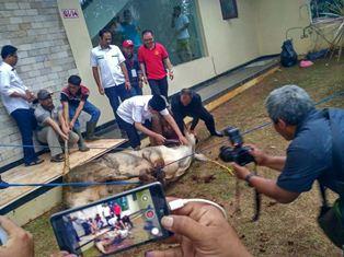 Setelah jumpa pers, pasangan Rano-Embay langsung menyembelih seekor sapi sebagai ungkapan rasa syukur atas terlaksananya Pilgub Banten dengan aman dan lancar. (uci/put)