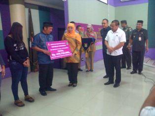TIGARAKSA - Sebanyak 95 eks PSK Dadap mendapatkan bantuan dari Kementerian Sosial, Selasa 28/6/2016. Penyerahan bantuan kepada PSK eks lokalisasi Dadap ini dilakukan secara simbolis oleh Menteri Sosial Hj Khofifah Indar Parawansa di Gedung Serba Guna (GSG), Puspemkab Tangerang.