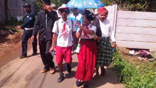 CISAUK - Banyak cara yang dilakukan warga dalam memeriahkan HUT Kemerdekaan Republik Indonesia. Salah satunya adalah dengan menggelar karnaval. Usai melakukan upacara pengibadaran bendera Merah Putih di lapangan olahraga SMA Ruhul Bayan, ratusan warga Cisauk berjalan kaki mengelililingi kawasan BSD.