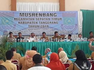 SEPATAN TIMUR - Pemerintah Kecamatan Sepatan Timur, Kabupaten Tangerang menggelar kegiatan Musyawarah Rencana Pembangunan (Musrenbang) Tahun 2019. Musrenbang ini digelar diaula serba guna Kecamatan Sepatan Timur, Senin (25/2/2019).