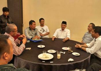 KELAPA DUA - Perdebatan sengit antara ketua Kadin non aktif H Dedi Kurniadi dengan wakil ketua Kadin Provinsi Banten Agus Wisas menarik perhatian awak media, usai menggelar komperensi pers saat pembentukan caretaker pada Senin (6/3/2017) malam di Hotel Yasmin, keduanya saling adu argumentasi terkait keabsahan pembentukan carektaker.