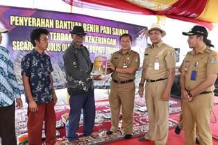 Selama kemarau panjang tahun ini, terdata seluas 916 hektar sawah yang mengalami gagal panen (puso). Bantuan benih padi ini merupakan wujudnyata hadirnya pemerintah daerah kepada masyarakat para petani.