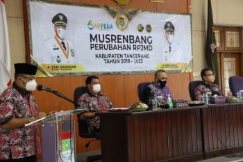 Dalam sambutan pembukaannya, Bupati Zaki mengatakan, berdasarkan hasil evaluasi terhadap RPJMD Kabupaten Tangerang Tahun 2019-2023 bahwa akibat dari refocusing dan realokasi anggaran untuk penanganan pandemi Covid-19 pada tahun 2020, terdapat beberapa target kinerja yang harus disesuaikan.