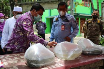 "Terimakasih kepada Sekertaris Daerah dan Kepala Dinas Perikanan sudah menyempatkan waktu berkunjung di pondok pesantren yang sederhana ini untuk memberikan bantuan berupa bahan olahan dan juga bibit ikan lele, ikan mas dan ikan lele yang Insya Allah bermanfaat", kata dia.