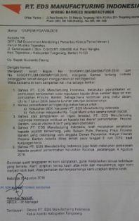 Hamdan juga menjelaskan melalui surat tersebut, bahwa PT Pemi menggunakan air kali irigasi tersebut telah membayar restribusi air kepada Pemerintah Provinsi Banten sesuai volume tarif yang sudah di tentukan. Kegiatan tersebut telah dilakukakan penjelasan dari pejabat berwenang yaitu Satpol PP dan DPRD Provinsi Banten serta dinas terkait pada tanggal 9 Juni 2016 saat kunjungan kerja.
