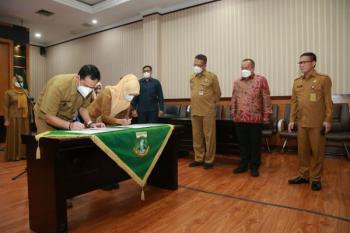 SERANG, (JT) - Pemerintah Provinsi Banten melakukan Kerjasama Pembiayaan Daerah untuk Penanganan Covid-19 dan Pemulihan Ekonomi di Provinsi Banten. Kerjasama ini sebagai salah satu upaya Pemprov Banten mencapai target RKPD Perubahan 2020. Penandatanganan dilakukan oleh Gubernur Banten Wahidin Halim (WH) dan Direktur Utama PT Sarana Multi Infrastruktur Persero Edwin Syahruzad.