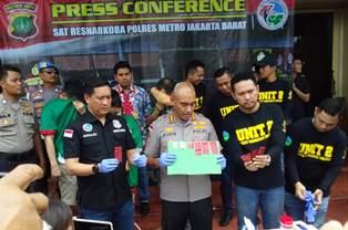 JAKARTA, (JT) - Polres Metro Jakarta Barat menggelar konferensi pers untuk membeberkan perkembangan kasus narkoba yang menjerat artis sekaligus model majalah dewasa, Vitalia Sesha.