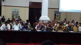 SERANG - Gubernur Banten H. Wahidin Halim menggelar Rapat koordinasi Pimpinan Daerah Provinsi Banten dengan para Pimpinan Kepala Daerah. Rapat koordinasi ini digelar jelang kesiapan menghadapi Hari Raya Idul Fitri 1 Syawal 1438 H, di Pendopo Gubernur Banten, Kamis (15/06/2017).