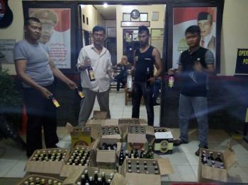 Razia yang dipimpin Kanit Resekrim Samsu mengamankan 73 botol bir, 23 botol anggur kalesom, 60 botol bir hitam, 12 botol anggur merah dan tiga botol anggur putih.