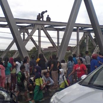 Masyarakat yang berdatangan bukan hanya untuk melihat ketinggian air yang sedang meluap saja, namun mereka juga melihat banyaknya anak remaja yang melakukan aksi loncat dari atas jembatan tersebut.