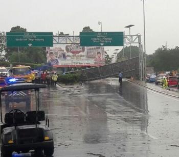 Reklame di Bandara Soetta Roboh, Lalu Lintas Tersendat