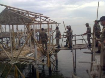 Ratusan Satpol PP bergerak ke lokasi warung yang diduga sering dijadikan tempat mesum ini sejak pagi. Tanpa ada perlawanan dari pemilik warung, Satpol PP kemudian menyisir warung-warung di area bibir pantai. Sebelumnya Pemerintah Kecamatan Sukadiri memberikan peringatan kepada pemilik warung untuk membongkar sendiri warung yang melebihi garis pantai 10 meter.