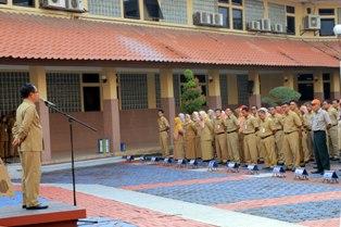 Dalam apel kali ini, Dadi juga menyinggung soal kedisiplinan pegawai mengenai kehadiran para pegawai yang mengikuti apel pagi.