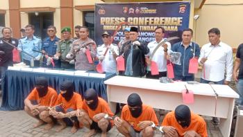 PANONGAN, (JT) - Aparat Polsek Panongan Polresta Tangerang Polda Banten meringkus delapan orang remaja diduga berandalan motor. Tiga diantaranya masih di bawah umur.