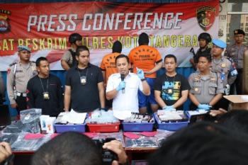 Kapolresta Tangerang AKBP Ade Ary Syam Indradi menjelaskan, para tersangka membeli telepon genggam jenis iPhone berbagai tipe rusak dari Singapura tanpa dilengkapi izin impor. Telepon genggam rusak itu, kata Ade, kemudian direkondisi dengan mengganti komponen dengan suku cadang bukan original iPhone.