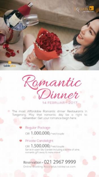 Khusus pada bulan February ini, The Square Restarant hadir dengan penawaran istimewa yaitu Romantic dinner untuk tanggal 14 February malam menawarkan open sky view yang menakjubkan untuk makan malam romantis dan makanan yang dihadirkan beranekaragam mulai dari Italian food, western, dessert, Asian dan tentunya masakan Nusantara. Dengan cita rasa berkelas yang dapat memanjakan semua pengunjung.