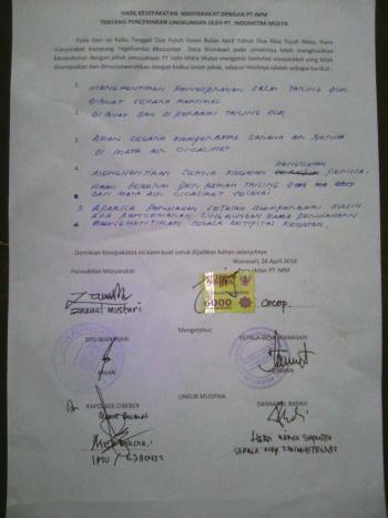 Pimpinan PT. IMM Cecep mengajukan permintaan maaf atas nama perusahaan dan berjanji akan menyelesaikan tuntutan masyarakat dalam waktu dekat. "Selain itu Kami selaku pihak perusahaan akan merubah sistem tailingdam yang bisa dikatakan kurang layak," ujar Cecep.