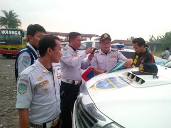 Petugas Dishub yang dibantu oleh Polantas Polresta Tangerang menyisir sejumlah bus angkutan karyawan dan angkutan umum yang tidak memiliki kelengkapan surat-surat kendaraan. Angkutan yang terkena razia petugas Dishub dan kepolisian ini rata-rata tidak memiliki izin trayek.