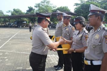 TIGARAKSA - Kapolresta Tangerang Kombes Polisi Asep Edi Suheri memberikan Penghargaan kepada 6 Anggota Polantas Polresta Tangerang. Ke enam anggota tersebut dinilai berprestasi dalam menjalankan tugasnya sebagai anggota polisi. Salah satu yang mendapatkan penghargaan dari Kapolresta Tangerang adalah Polisi Wanita (Polwan).