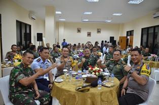 TIGARAKSA - Para perwira TNI se-Tangerang bersama para perwira Polresta Tangerang, Jumat (28/12/18) siang berkumpul di Rupatama Polresta Tangerang. Hadir pada acara itu Danrem 052 Wijayakrama Kolonel Kav Agustinus Purboyo dan Dandim 0510 Tigaraksa Lekol Inf. Yogi Muhammanto.