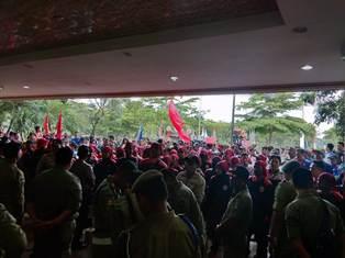 Ratusan buruh yang datang dengan konvoy kendaraan bermotor ini, langsung menggelar orasi di halaman gedung DPRD. Salah satu koordinator aksi Supriyanto menyampaikan, RUU Omnibuslaw yang digagas pemerintah pusat ini jelas merugikan kaum buruh dan rakyat kecil. Sebab dalam draf rancangan undang-undang ini terdapat point-point Berkurangnya nilai pesangon para pekerja yang diputus hubungan kerjanya. Sistem perhitungan pengupahan menjadi perjam. Tenaga kerja asing (TKA) yang tidak mempunyai keahlian khusus boleh bekerja dan tidak ada batas waktu bagi TKA. Tidak ada batasan waktu dan jenis pekerjaan bagi pekerja kontrak/PKWT. Serta Tidak adanya sangsi pidana bagi pelaku usaha yang melanggar UU Ketenagakerjaan.