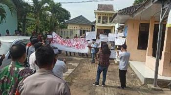 SUKAMULYA, (JT) - Puluhan warga Desa Bunar, Kecamatan Sukamulya, Kabupaten Tangerang menggelar aksi demontrasi di depan Kantor Desa Bunar, Rabu (09/09/2020).