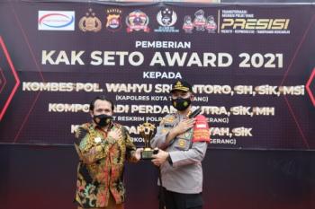 TIGARAKSA, (JT) - Satuan Reserse Narkoba Polresta Tangerang, Polda Banten patut berbangga lantaran diganjar penghargaan dari Polisi Selebriti Indonesia, Senin (8/3/2021). Penghargaan diterima oleh Kapolresta dan Kasat Narkoba Polresta Tangerang Kompol Panji Firmansyah di Mapolresta Tangerang.